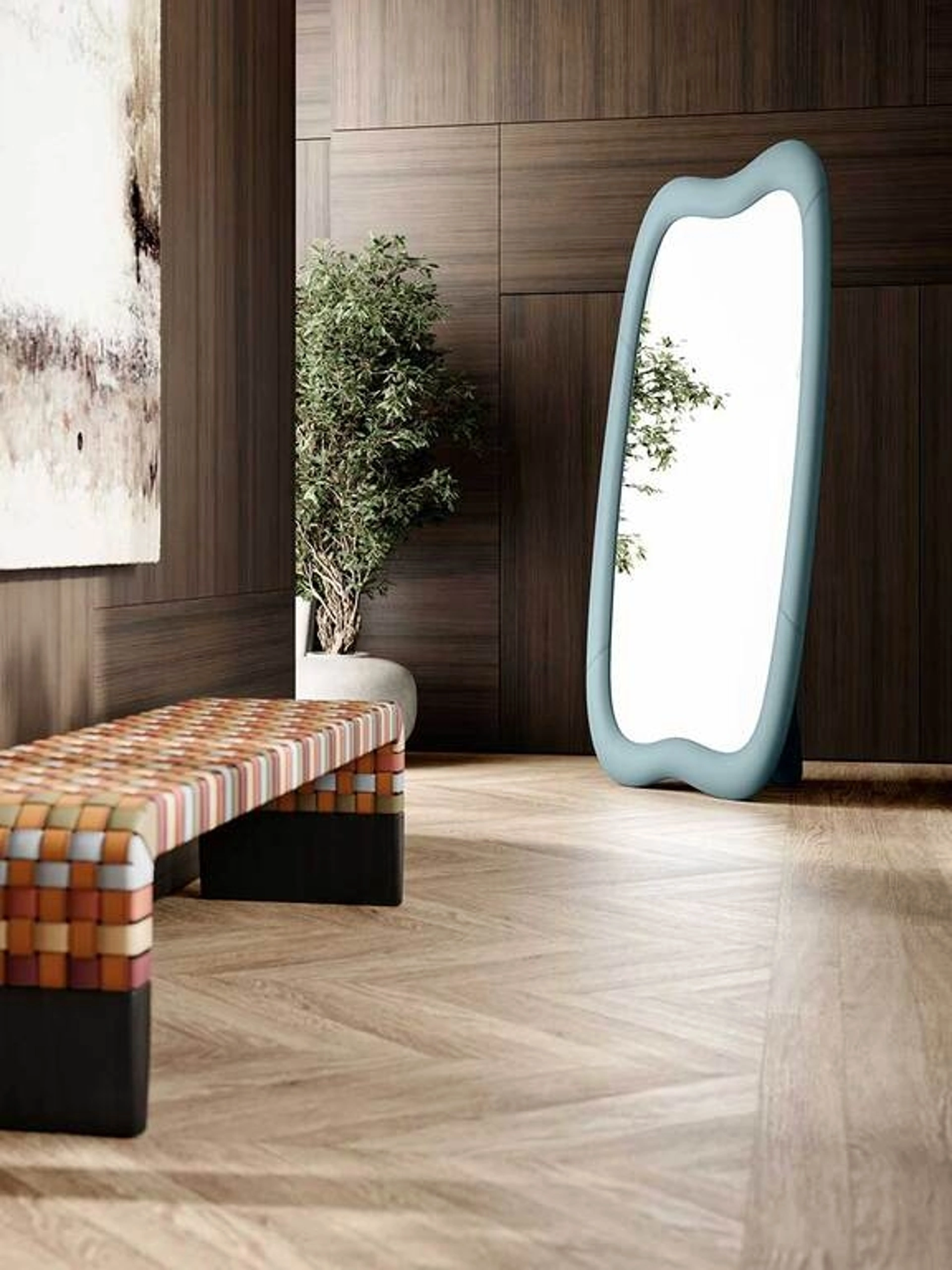 Specchio lungo Squash di Poltrona Frau in pelle: conferirà carattere e charme a un interno arredato con mobili ed elementi accessori dai richiami design. Complementi e specchi personalizzano l'arredo di casa, riempiendo lo spazio in maniera utile e rendendolo accogliente e bello da vedere. Molto versatili e multifunzionali, i Complementi design in pelle assolvono a funzioni diverse: ultimano le doti pratiche e l'estetica dell'ambiente. Nel nostro showroom potrai toccare con mano l'eccellenza dei modelli di specchi design in pelle dell'azienda, proprio come questa soluzione in foto. Le composizioni di alto valore estetico del brand Poltrona Frau personalizzano l'ambiente con colore e gusto, ricreando particolari atmosfere arredative.