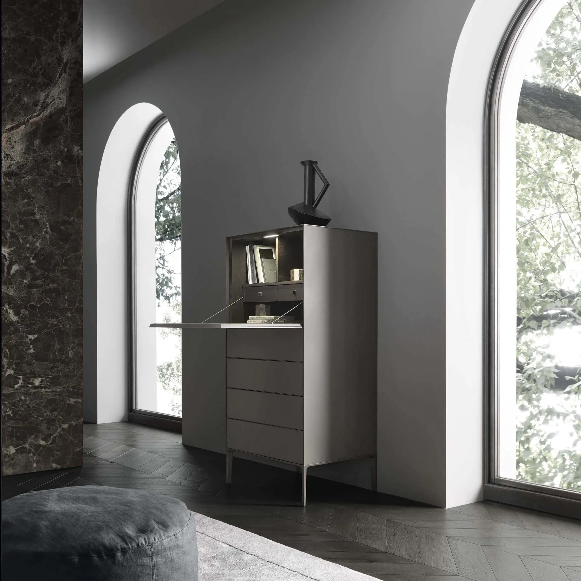 I Comodini sono arredamenti capaci di ultimare la camera fornendo un territorio di appoggio certamente utile e poliedrico. Ti chiedi in che modo abbinare letti, armadi e comodini? Con il modello di Rimadesio visibile in foto avrai un mobile adeguato per uno spazio dai richiami moderni. Materiali di qualità e ottima fattura per il Cassettiera con scrittoio Self Secretaire di Rimadesio in in vetro, disponibile in showroom unitamente alle altre varie idee del marchio, per fare della camera da letto un ambiente che rispecchi la tua personalità.