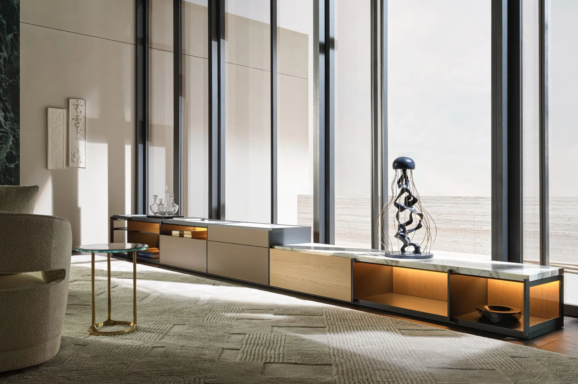 Scopri le più belle soluzioni salvaspazio, come il mobile soggiorno in foto in laccato opaco, e dai vita al soggiorno pratico e operativo che hai sempre sognato. Il noto e rinomato brand produce Librerie e multimedia componibili moderne in una grande varietà di conformazioni, dimensioni, texture e cromie per garantire la massima versatilità. Valorizza i tuoi spazi con i mobili e oggetti accessori Molteni & C: in negozio ti attendono prodotti funzionali e di alto contenuto estetico, sempre in materiali di qualità e dall'estetica raffinata. Potrai utilizzare questi mobili come un piano d'appoggio multifunzionale, per riporci sia oggetti d'uso quotidiano, sia tipicamente decorativo. Rivolgendoti ai nostri arredatori potrai avere informazioni di ogni tipo sulla Libreria a moduli componibile Logos di Molteni & C qui visibile.
