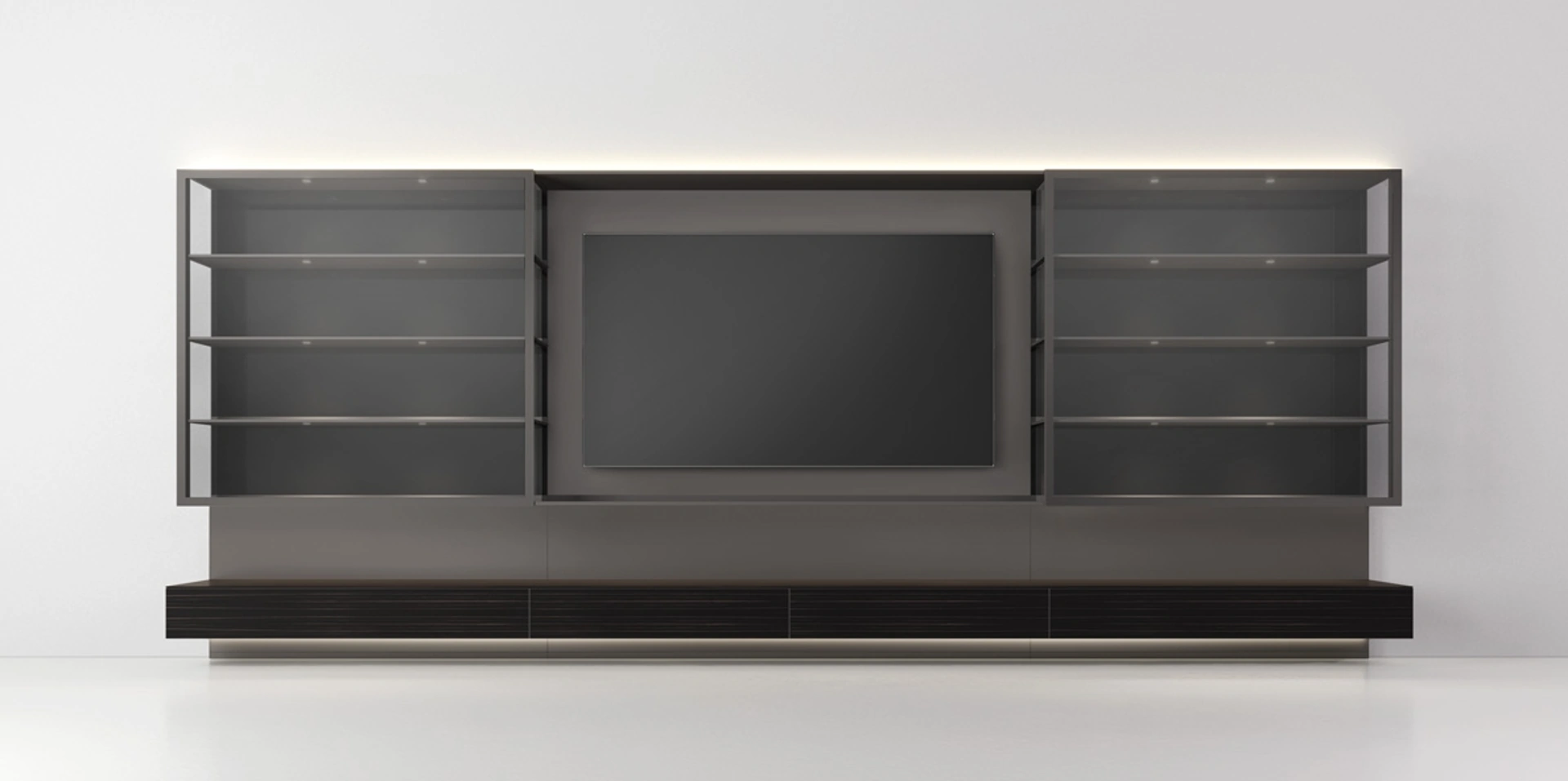 Questa parete attrezzata è una delle soluzioni dell'azienda e ti consentirà di allestire la zona giorno seguendo le più personali esigenze abitative. Per informazioni e preventivi sulla Parete Attrezzata Abacus Grafite di Rimadesio nella fotografia contattaci! Il modello proposto è realizzato in vetro, ma grazie ad una vasta scelta di finiture, tonalità e forme, potrà adattarsi a stili di ogni genere. Attraverso un gioco dinamico di accostamenti fra componenti a giorno o vani chiusi, le Pareti Attrezzate moderne arredano il living sfruttando bene ogni spazio.
